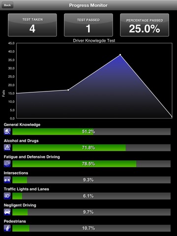 The application saves the result of each question answered and a history of failures and successes to offer the most advanced system of all the statistics.