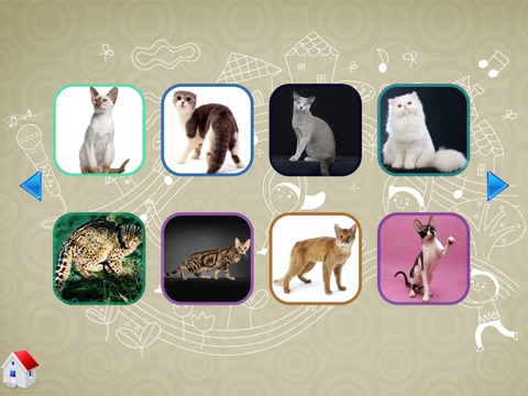 This app provides 50 flash cards with different kind of dogs and 50 flash cards with different kind of cats.