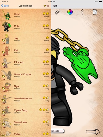 Characters from well known Games and Cartoons are waiting for you! Download Lego Ninjago drawing app right now for free!