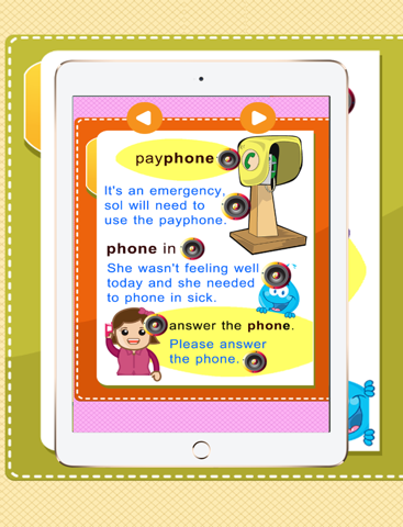 Learn the vocabulary about phone. There are pictures and sound, make the child easy to understand.