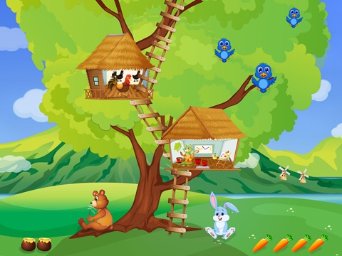 Games for learning about shapes, colours, polarities (opposites) and shadows offer children a fun way of preparing for school. After the tasks have been successfully completed, food is collected which can be fed to the different animals. This motivates the children to successfully overcome further, even more difficult tasks in the tree houses.