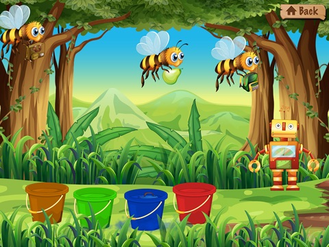 • Playing with colours – Move the coloured objects into the correct paint buckets
