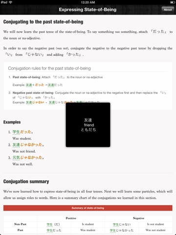 Itll force me out of using romanji ! <_< Its very good to explain the whole thing. I wish there were exercises so I guess Ill buy the other apps (which are at a very fair price compared to Assimil and stuff) Will we ever get an app where we should strike the kana and kanji on our phones/tablets and get graded on how well we follow the strike order and how close is it to the original ? :D