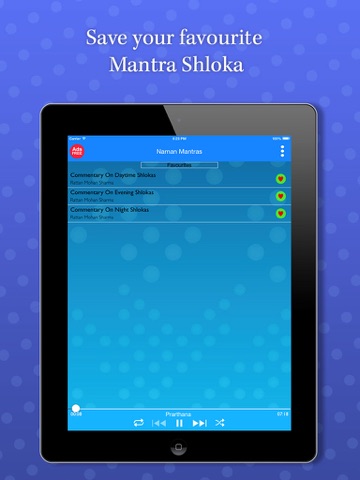 The app is divided into four sections: morning, daytime evening and night time shlokas, with the well-known voice of Harish Bimani introducing each section in English, with a few crisp sentences. It begins with the Prathaha vandana", invocations to Goddess Lakshmi and Lord Ganesha. This is followed by the Gayatri Mantram and a Shanti Mantram: a prayer for peace.
