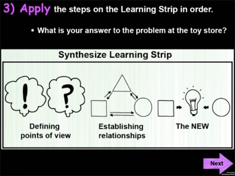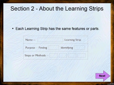 The Learning Strips allow the user to apply the strips to different situations, content, and/or scenarios. The different steps of each strip or process can be mixed and matched to align with the users perceptions or ideas of how to perform the learning to learn skills on each strip.