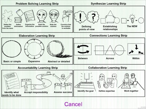 The Learning to Learn Strips outline the steps to understand and practice the processes to problem solve, synthesize, collaborate, be accountable, and elaborate an idea or topic.