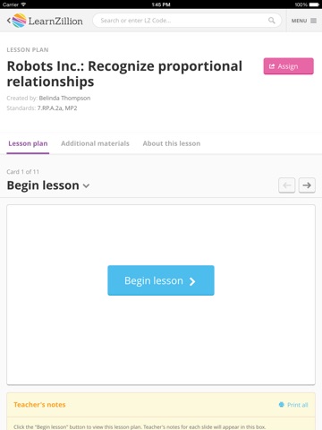 Teachers and students can expect the same great LearnZillion experience in the app that they experience on the web and more: