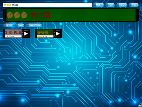 This small and beautiful application converts all the text and emoticons to all languages in a high-resolution LED banner. You can display, save or share videos directly on Facebook .