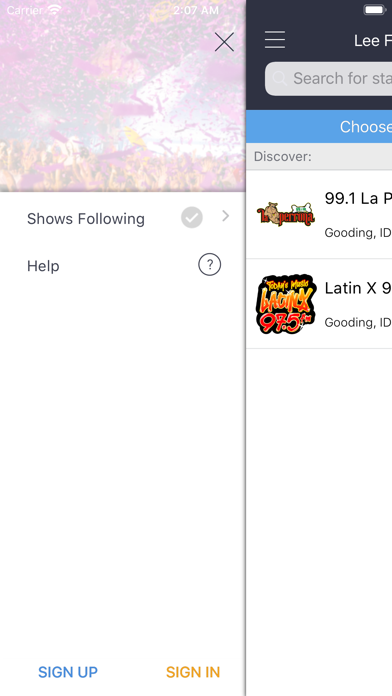 - Instant play of the radio station with song information