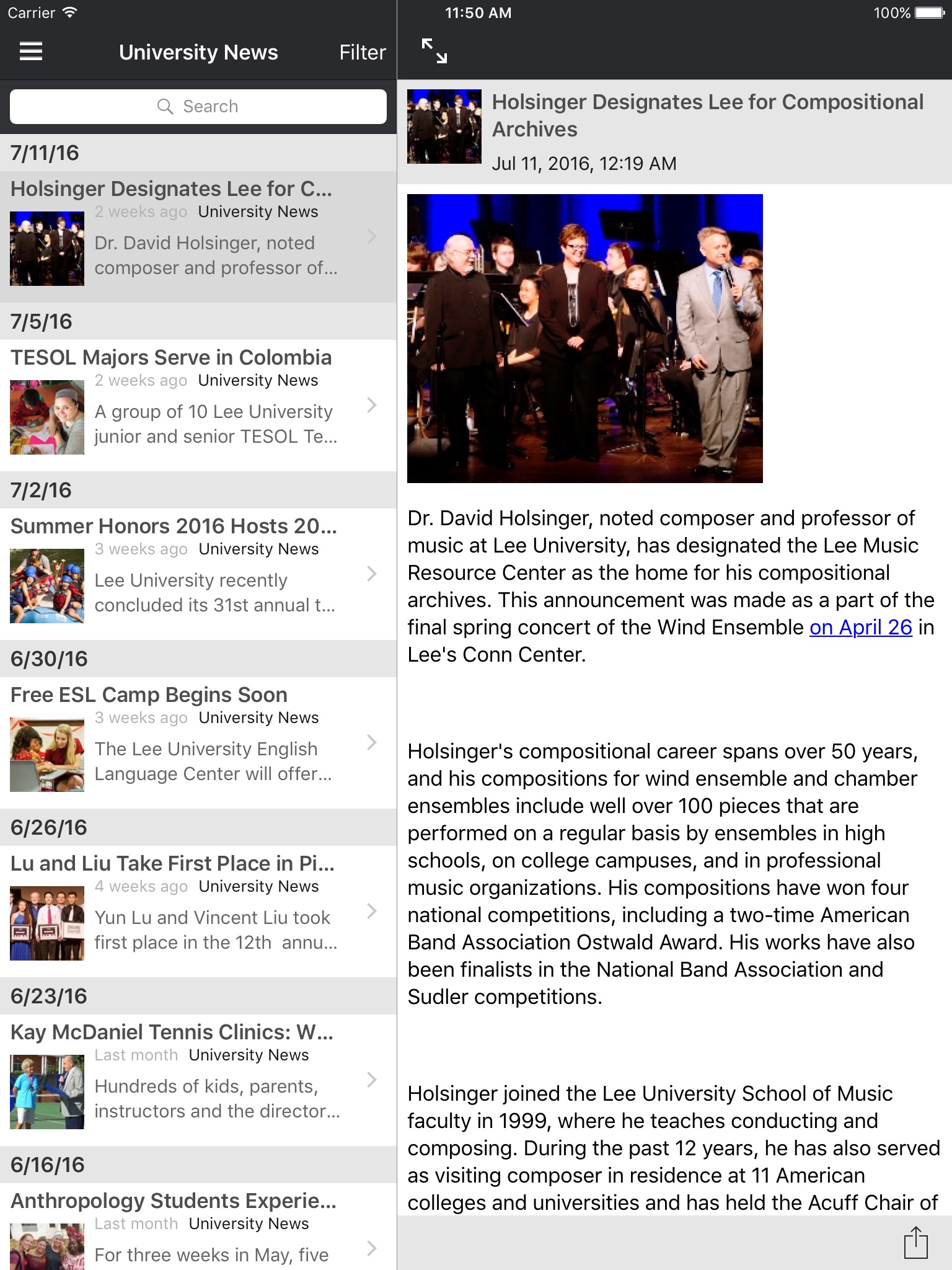 The official mobile app of Lee University. Easy access to academic info, campus happenings, notifications and anything that is related to Lee University.