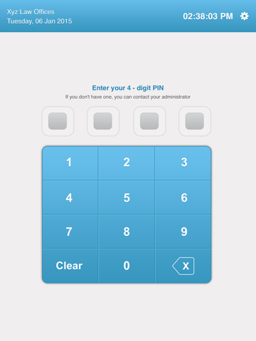 Legal Plex Check-In allows your law firm to use an iPad as your employee time tracking system. Employees can simply check in and check out by entering a designated 4 digit pin.