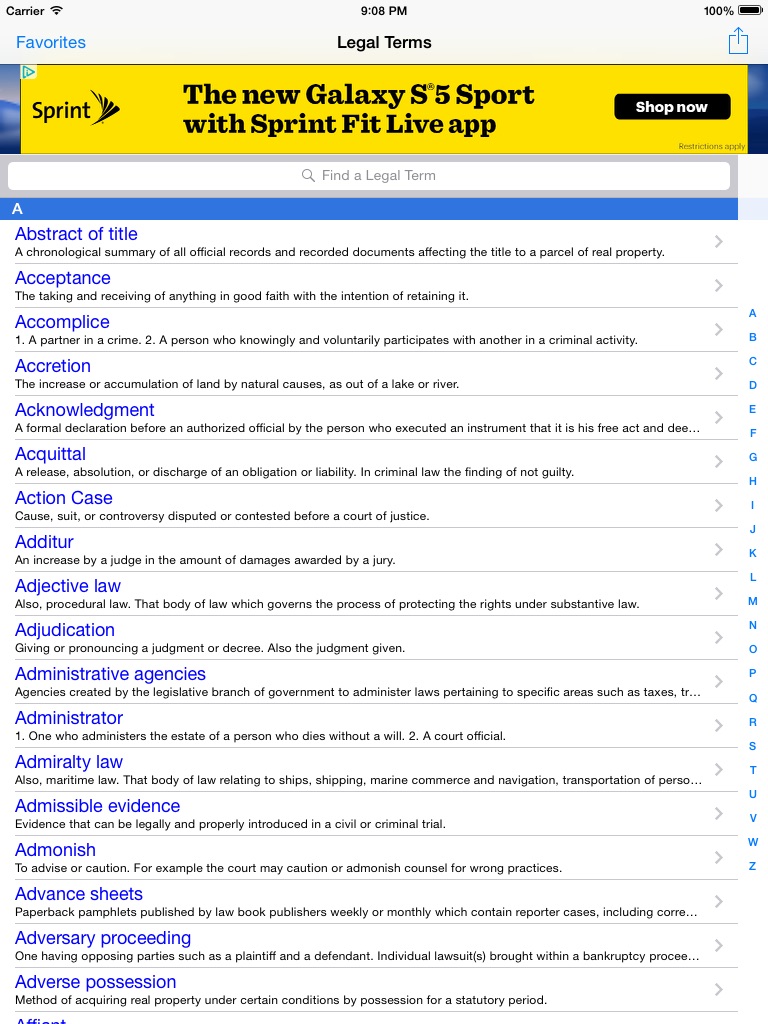 This cool app provides you with instant access to a complete dictionary of legal and law terms!
