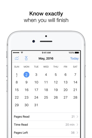 If you need to finish a book by a certain date, Leio can tell you how long or how many pages to read per day to finish in time. You can also play with the settings and come up with your own reading plan: tell Leio how much and how often you plan to read and see when you might finish in real time.