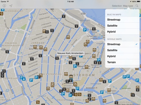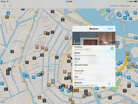 LeisureMap shows many types of recreational facilities neatly arranged on the maps of your iPad, iPhone, or iPod touch. All types can be displayed independently. Switch between Google Maps or the built-in maps at any time. With Google Maps you can rotate and tilt the maps. LeisureMaps is available for many countries. More countries are constantly added.