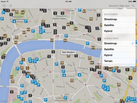 LeisureMap shows many types of recreational facilities neatly arranged on the maps of your iPad, iPhone, or iPod touch. All types can be displayed independently. Switch between Google Maps or the built-in maps at any time. With Google Maps you can rotate and tilt the maps. LeisureMaps is available for many countries. More countries are constantly added.