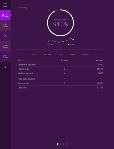 Keep an eye on the performance of your portfolio(s): see which notes are paying on time and which are falling behind, and obtain detailed information about each.