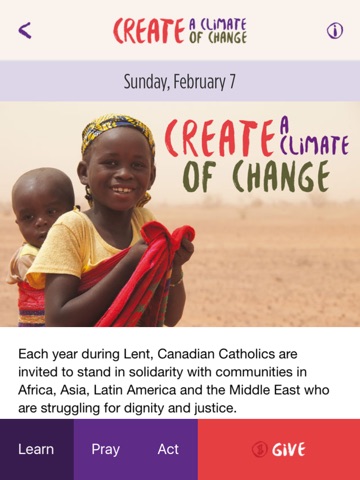 Running throughout the six weeks of Lent, this Lent Calendar app features stories of hope about our sisters and brothers around the world who are creating a climate of change. In the face of conflicts, climate change, and decreasing access to land and water, Development and Peace’s partners around the world are empowering the most poor and vulnerable to lift themselves out of poverty.