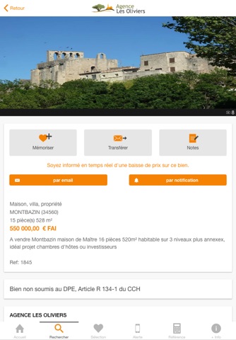 Votre agence immobilière Agence Les Oliviers met à votre disposition lensemble de ses offres immobilières sur votre mobile grâce à son application iPhone. Retrouvez de nombreuses annonces immobilières sur Montpellier et Saint Georges dOrques dans lHérault. Découvrez des offres immobilières de maisons, appartements, villas, terrains sur Montpellier (34) et ses alentours avec lagence immobilière Agence Les Oliviers à Saint Georges dOrques.