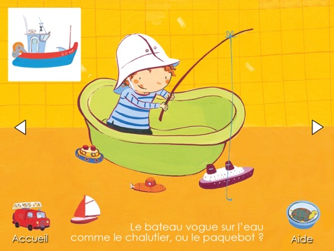 Transports is a bilingual application: by switching the language parameter of the device, your child can play in French as well.