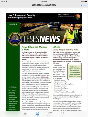The LESES Resource App is a tool for all National Park Services Law Enforcement Rangers. Resources and tools are available to access from mobile devices at anytime, anywhere.