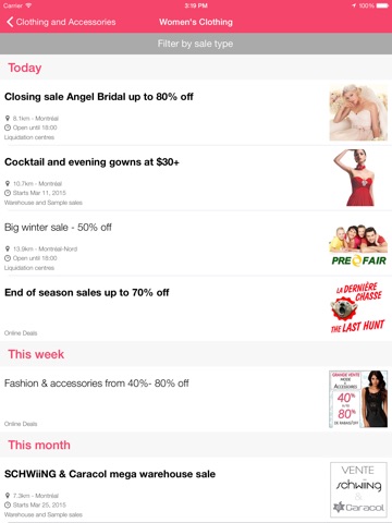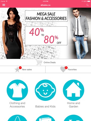 With allsales.cas app, discover new sales every day and save up to 90% off on day-to-day goods in the following categories: clothing and accessories, babies and kids, home and garden, health and beauty, sports and leisure, electronics and computers, and much more!
