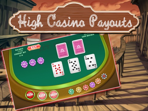 Play 5 card poker with 3 rounds of betting! Is your hand worth KEEPING or DROPPING? Place 3 bets and decide after community cards are turned over if your bet needs to be changed.
