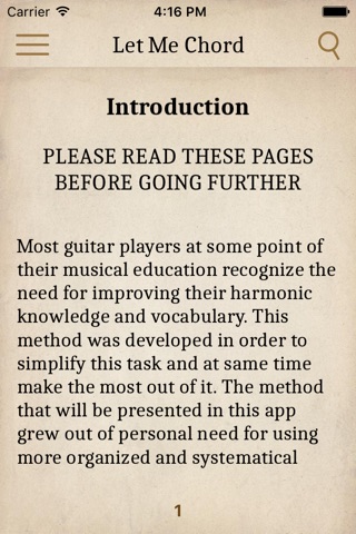 Have you ever tried to learn chords on the guitar from books or apps with thousands of chords and eventually figured out that you will never be able to memorize such an amount of chords? With this unique method you can easily master chords and harmony on the guitar once and for all! This method uses unique system which enables you to build all kinds of chords and extensions with many voicings and inversions on your own without spending years of just trying to learn everything by heart. The complete method is presented using text and chord diagrams in a well designed, e-book style user interface which provides a great reading experience and is easy to use.