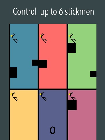 Prevent the little stickmen from free falling. You control 2, 3, 4 or 6 stickmen at the same time.