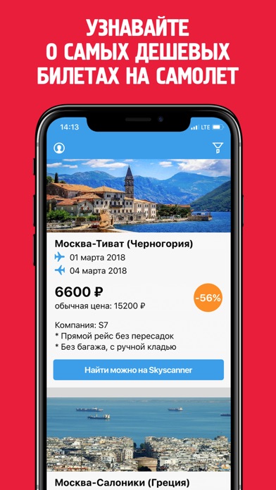 2) Get information about the cheapest offers via e-mail or app