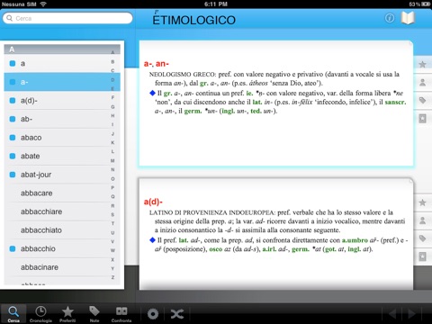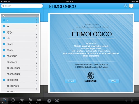 L’App contiene la versione integrale del vocabolario “l’Etimologico” di A. Nocentini pubblicato da Le Monnier, con la ricostruzione della storia di oltre 48.000 parole e di più di 27.000 tra derivati, composti e varianti.