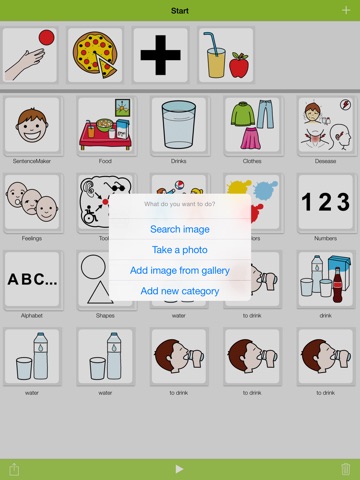 The image database of LetMeTalk contains more than 9,000 easy to understand images from ARASAAC (http://arasaac.org). Additionally, you can add existing images from the device or take new photos with the build in camera.