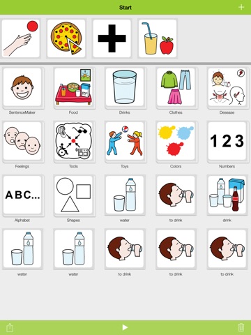 LetMeTalk enables you to line up images in a meaningful way to read this row of images as a sentence. To line up images is known as AAC (Augmentative and Alternative Communication).