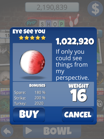 Awesome app for all bowling nuts out there many great lanes and balls to choose from and easy to spend hours playing.