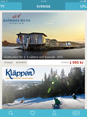 Since 2010 almost 1.8 million Scandinavians have saved more than 2 billion SEK through daily deals delivered by Let’s deal. The Let’s deal Travel app is a travel-exclusive showroom packed with offers from national and international hotels and travel agencies. Browse through spa hotels, countryside mansions and 5-star luxury hotels to find your dream offer: