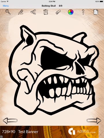 Learning to draw and paint with our app «Draw Cartoon Tattoo Skulls» is easy, just follow each step from the tutorial.