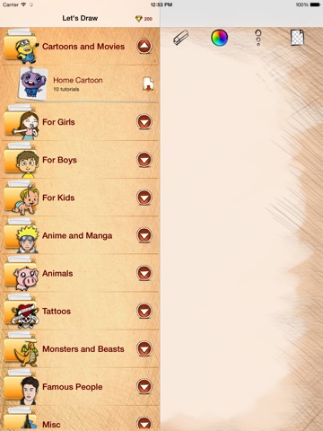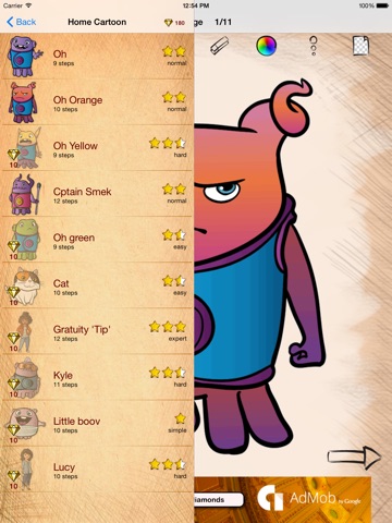 Learning to draw and paint with our app «Draw Cartoon Home Characters» is easy, just follow each step from the tutorial.