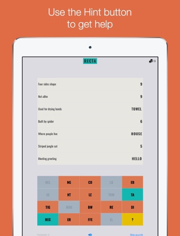 If stuck, you can use hints to keep moving forward.