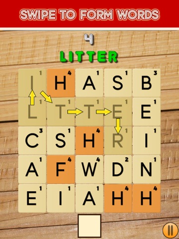 - Swipe over adjacent letters to form words