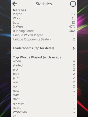 Cool game for now and then, push notifications make it easy to follow the game and the word validation helps me as a non-native speaker