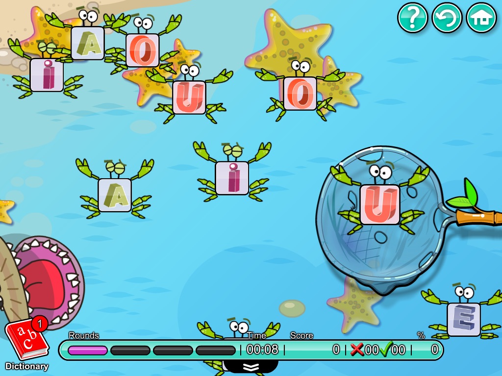 • 12 exercises and game activities: Rich Picture, Memory Game, Dialogue, Fish Spelling, Drag and Spell, Catch the Crab, Grammar Demo, Sing Along, Sentence Construction, Give Us a Clue, Point it Out, Interview