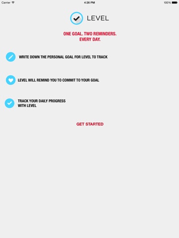 Level helps you commit to your goal every day and take a step closer to personal fulfillment. One goal, two reminders, every day.