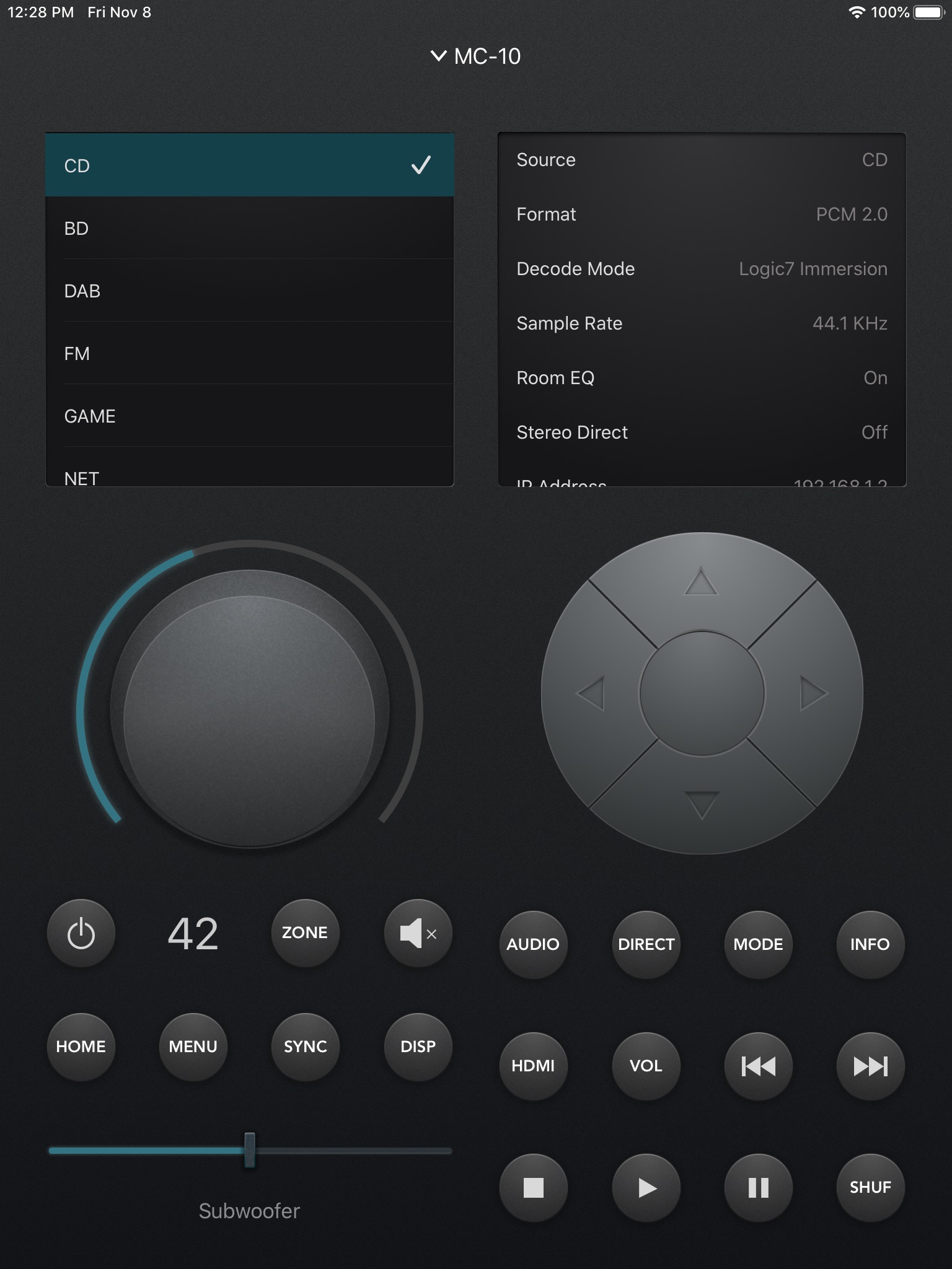 Remotely control your Lexicon device using iPhone, iPod Touch or iPad. Connect using your home network, providing feedback from your device and eliminating any line-of-sight issues present with infrared remote control.