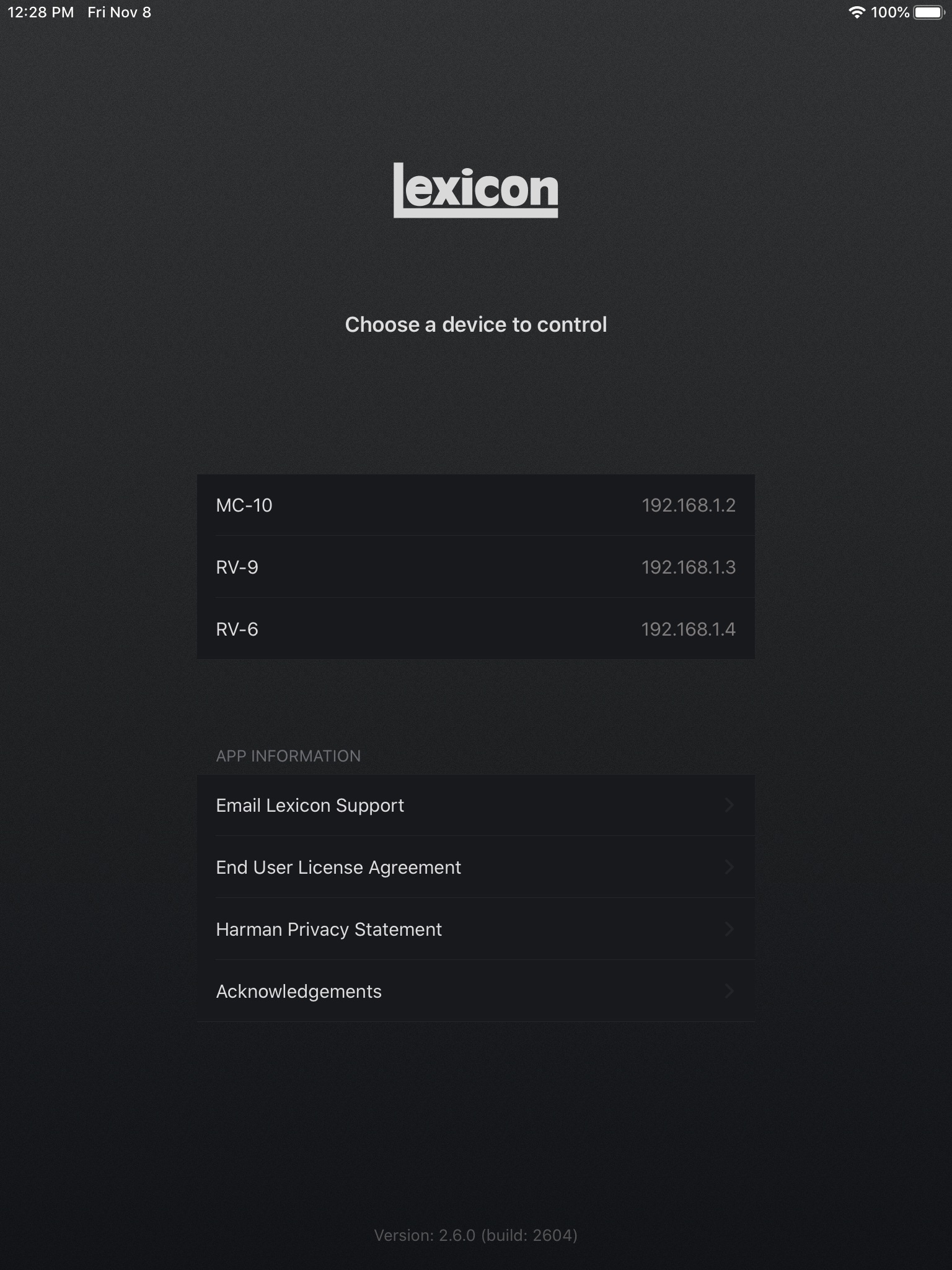 Compatible with the following Lexicon devices supporting advanced network control.