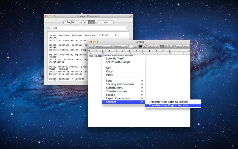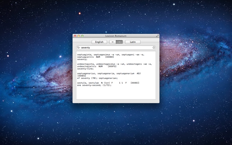 Lexicon Romanum is the first native, bidirectional Latin dictionary for Mac OS X that allows you to search both English and Latin phrases.