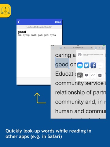 • New for iOS 8: You can now look up words while reading in Safari. Highlight any text and send it to the dictionary via the “Share” button. Please first enable the dictionary as a Safari extension.