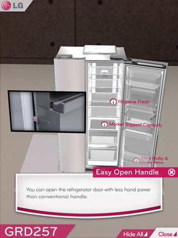 Interact with the refrigerator to learn fascinating functions, benefits, and basic operations with written explanations and video clips.