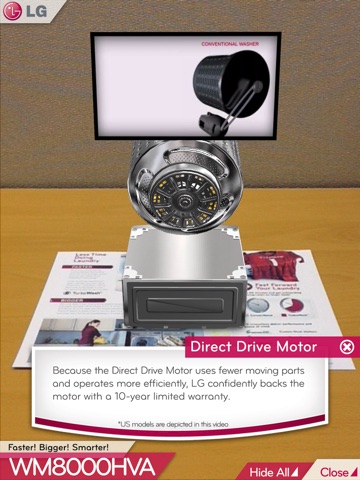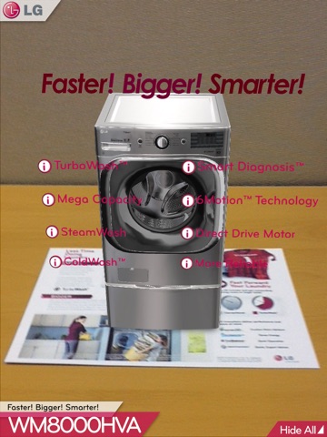 Experience LG’s Turbowash washing machine with the 3D Augmented Reality App.