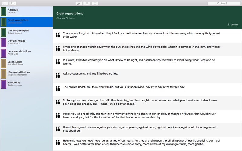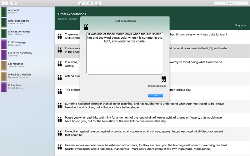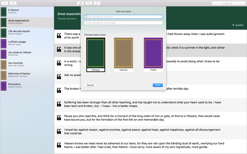 Add books to hold your quotes with their title and author, then add each quote that you have estimated to be a memorable one!