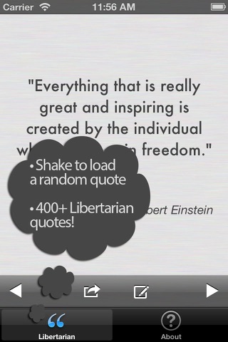 While the growing libertarian base doesnt have much political power in this country, they can derive power from this apps inspirational quotes. Simple, easy to use app with quotes from a lot of smart people.