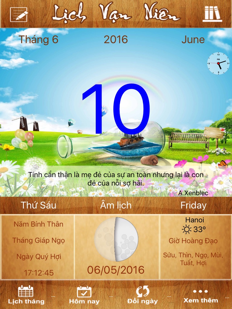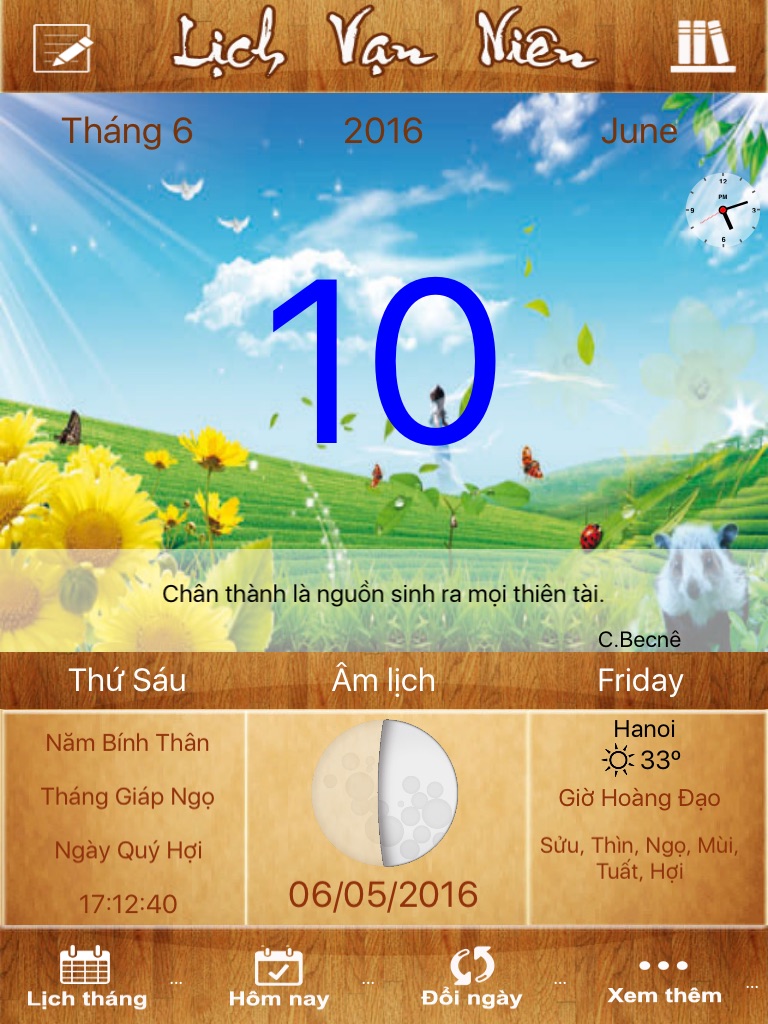 Lịch Vạn Niên 2016 là ứng dụng với nhiều tiện ích cho phép người dùng có thể tra cứu thông tin chi tiết về ngày, giờ hoàng đạo, ngày tốt xấu...theo lịch Âm-Dương truyền thống của Việt Nam. Với giao diện được thiết kế theo phong cách gỗ cổ điển, linh động thay đổi màu sắc, hình ảnh, hy vọng có thể mang tới cho người dùng những trải nghiệm thú vị.